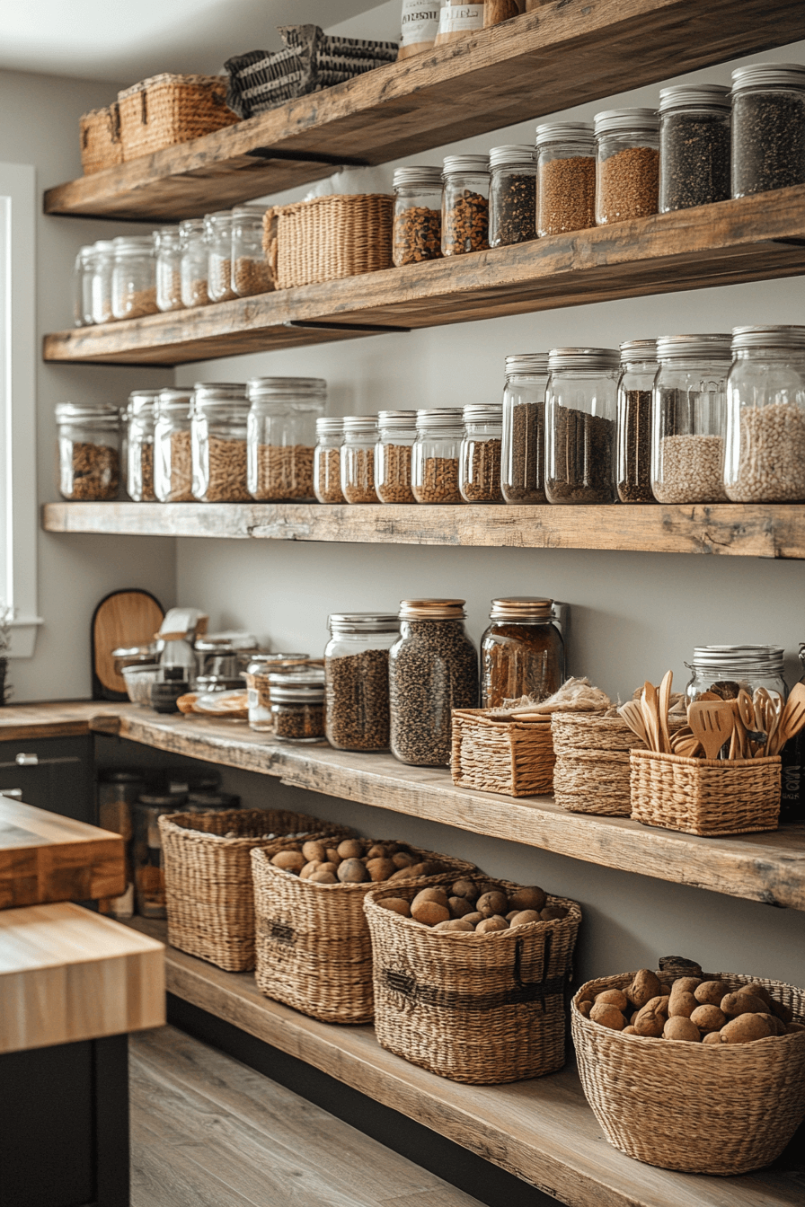 Order feels effortless in a modern farmhouse interior pantry designed with intention. Open shelving improves visibility. Natural materials soften storage spaces. Clean lines keep everything calm. Lighting enhances clarity.