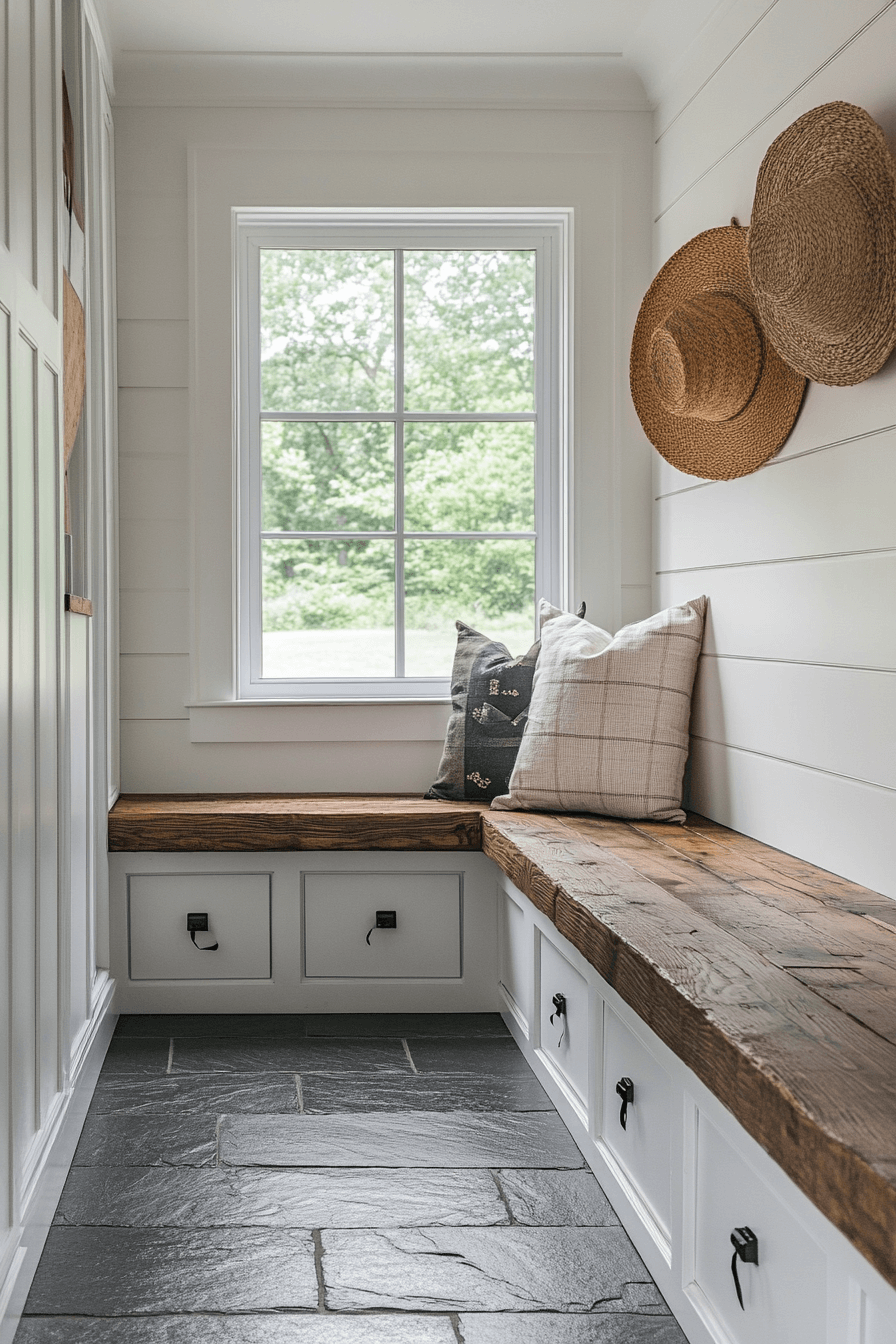 First impressions shine in a modern farmhouse interior entryway that feels warm, organized, and welcoming. Functional seating keeps clutter under control while rustic accents add character. Light tones open up the space and enhance flow. Simple decor choices maintain a clean, polished look. Subtle details make the area feel thoughtfully styled.