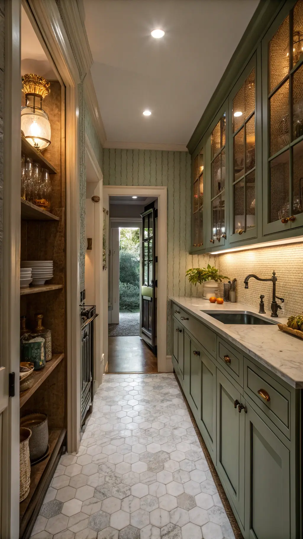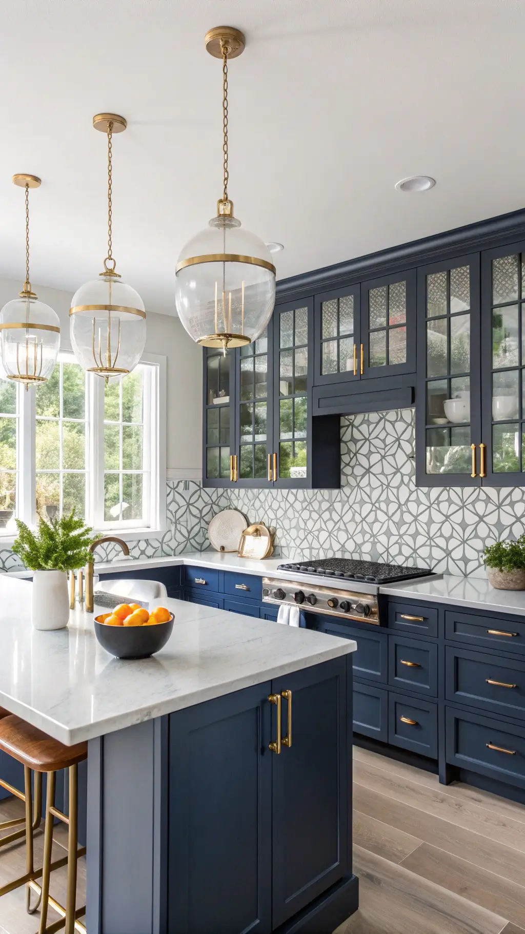 - Fluted glass cabinet doors