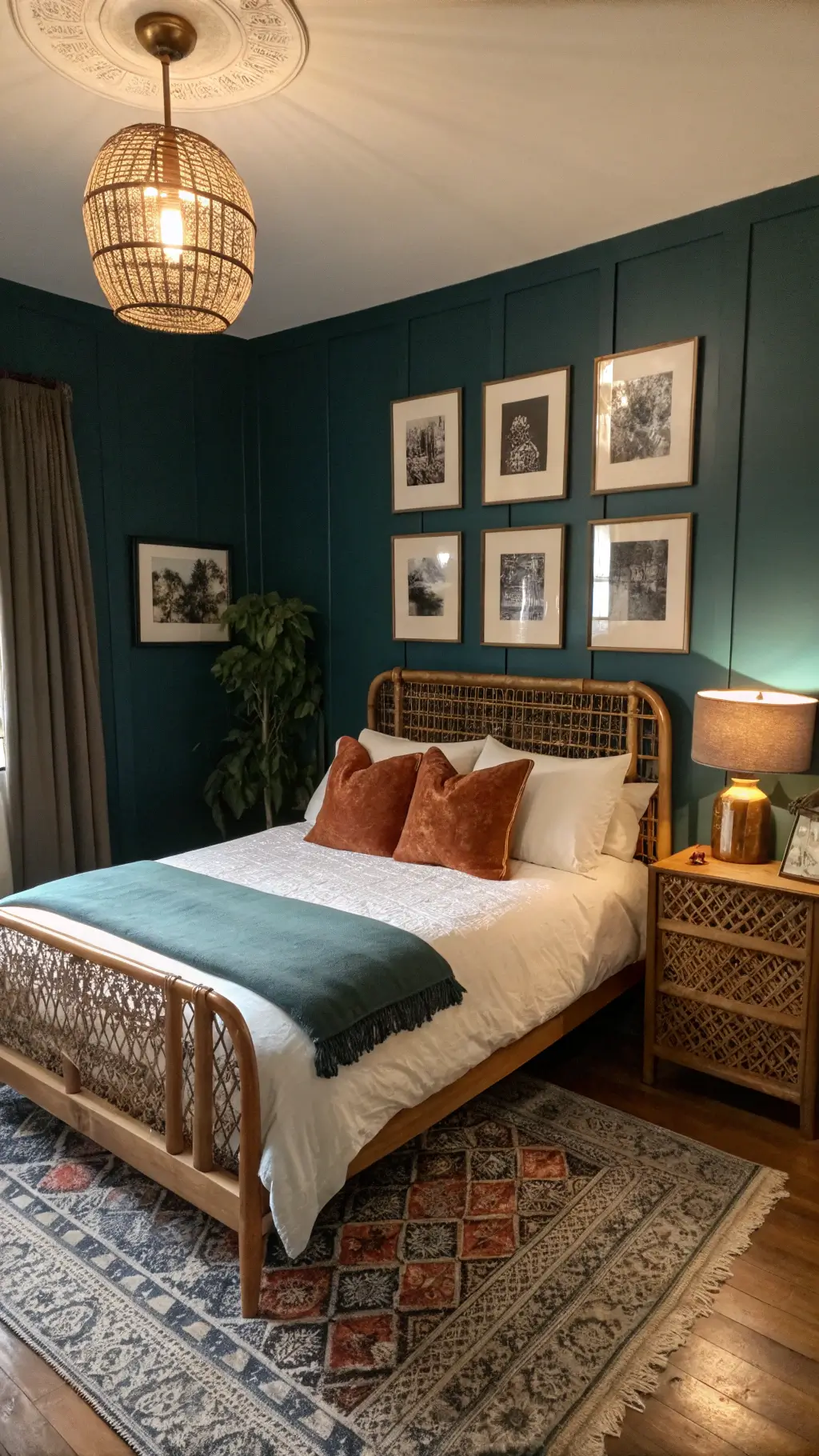 - Statement Bed: Think velvet headboard or bold upholstered frame