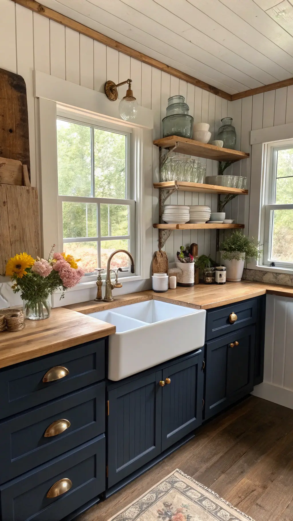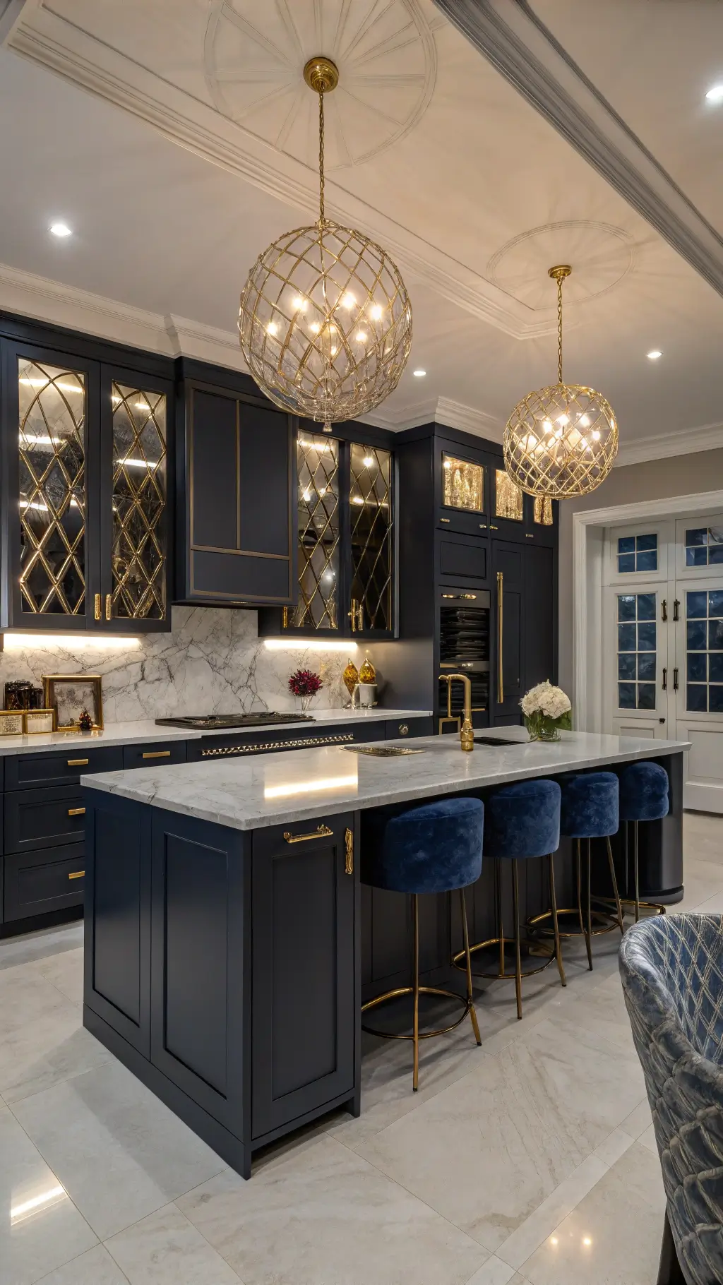 Keywords: navy blue kitchen cabinets, kitchen design, home renovation, interior styling, modern kitchen trends