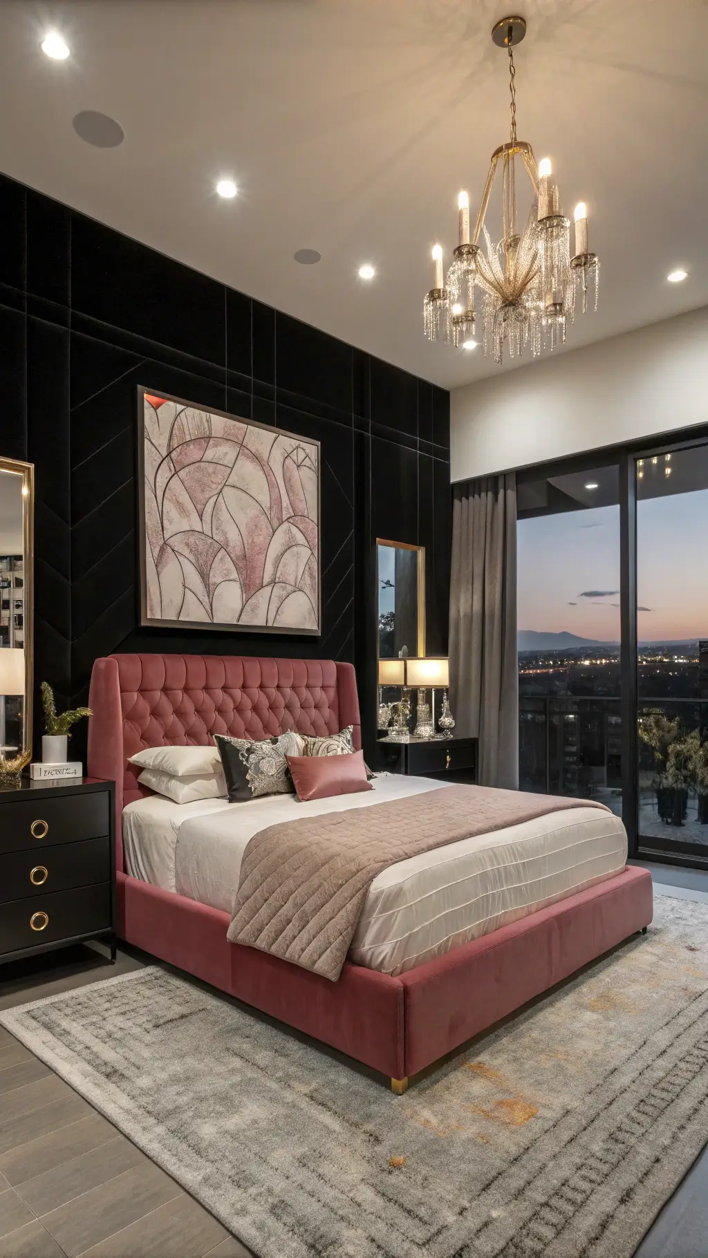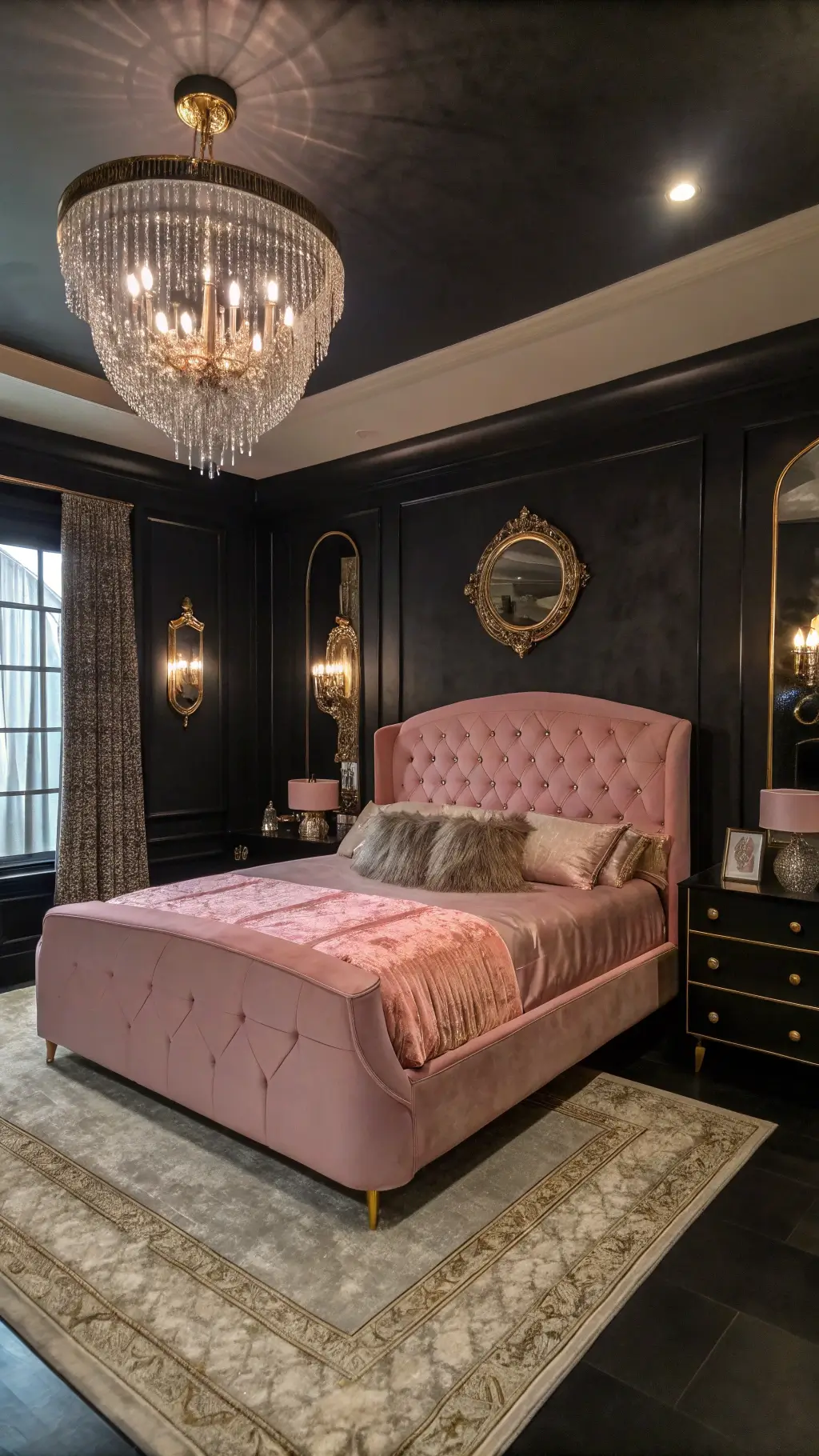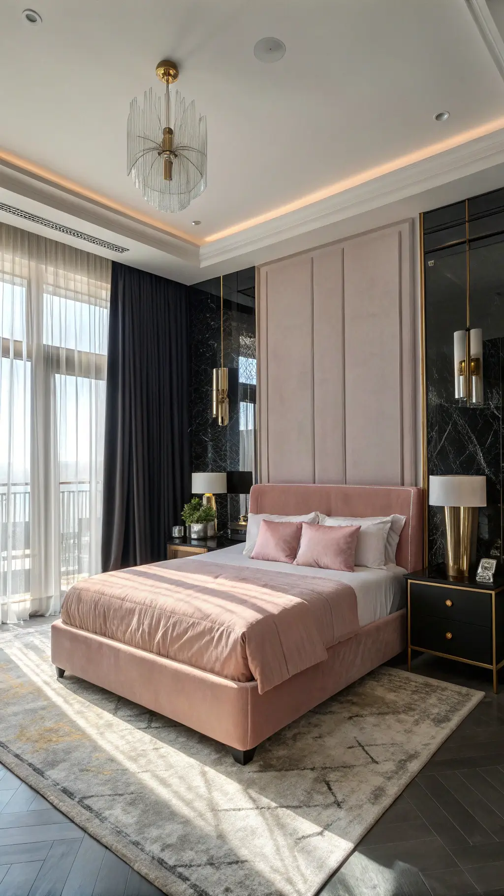 #PinkAndBlackBedroom #ChicDecor #ModernBedroom #InteriorDesign