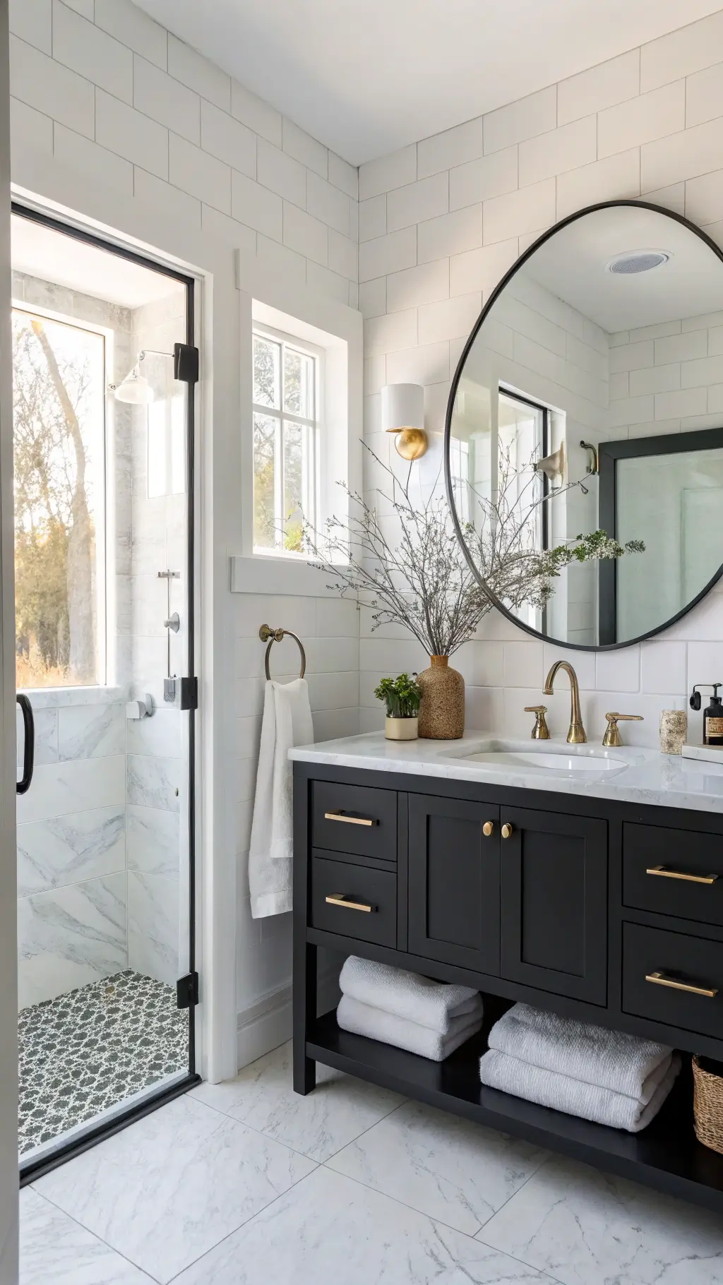 - Use metallic accents (brass, matte black)