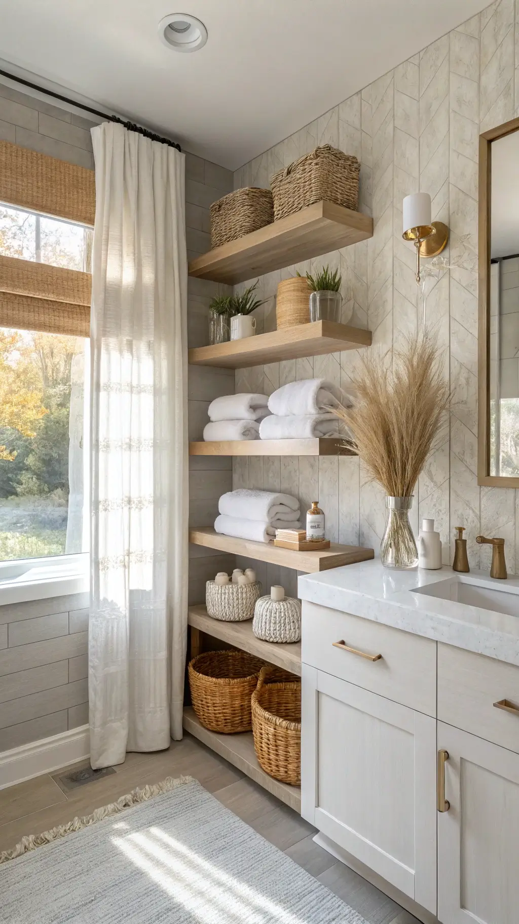 First things first – forget everything you think you know about small bathrooms. We’re not just organizing; we’re creating an experience.