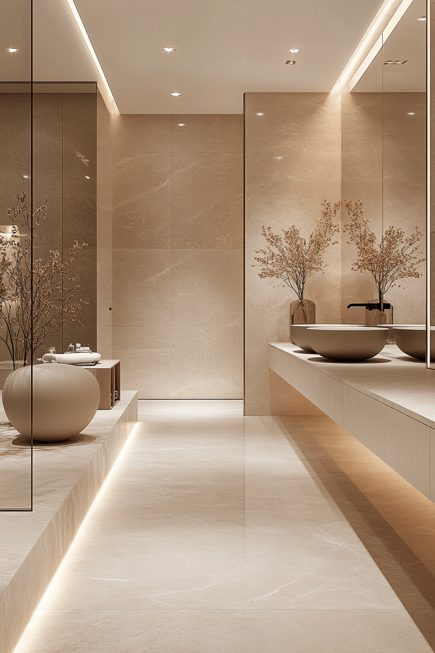 Matte textures add a soft, modern feel to stylish zen bathroom decor ideas. These finishes diffuse light and create a gentle glow. The understated look feels warm and inviting. Paired with neutral tones, the design feels cohesive and calm. These zen bathroom decor ideas show how subtle details elevate the space. Explore more matte-inspired bathroom styles.