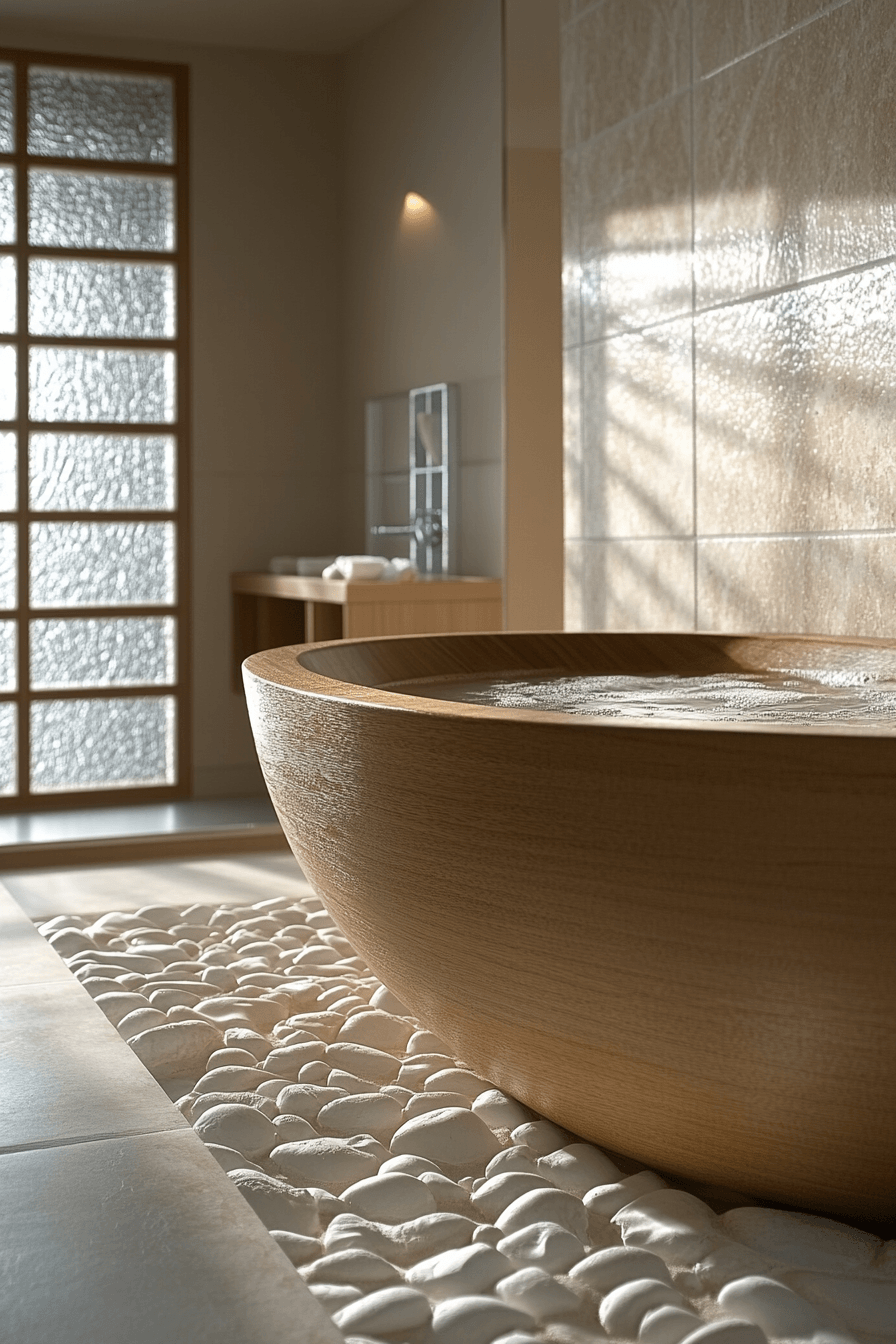 A deep soaking tub introduces a sense of calm luxury into elegant zen bathroom decor ideas. Inspired by traditional bathing styles, these tubs encourage relaxation and mindfulness. Their simple shapes complement minimalist surroundings beautifully. Positioned as a focal point, they elevate the entire design. These zen bathroom decor ideas transform bathing into a peaceful ritual. Discover more soaking tub inspiration for your space.