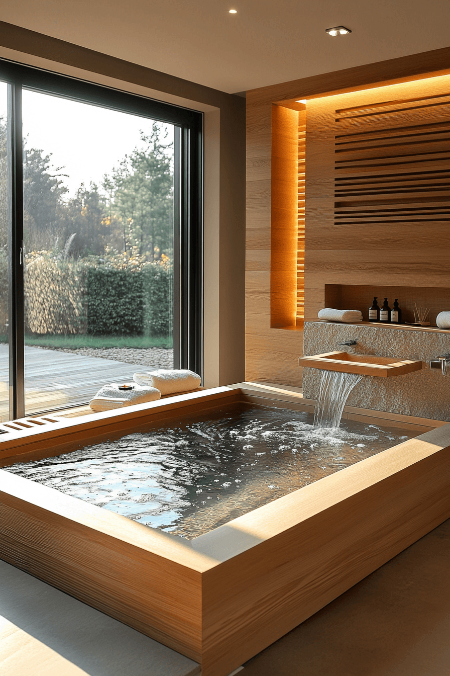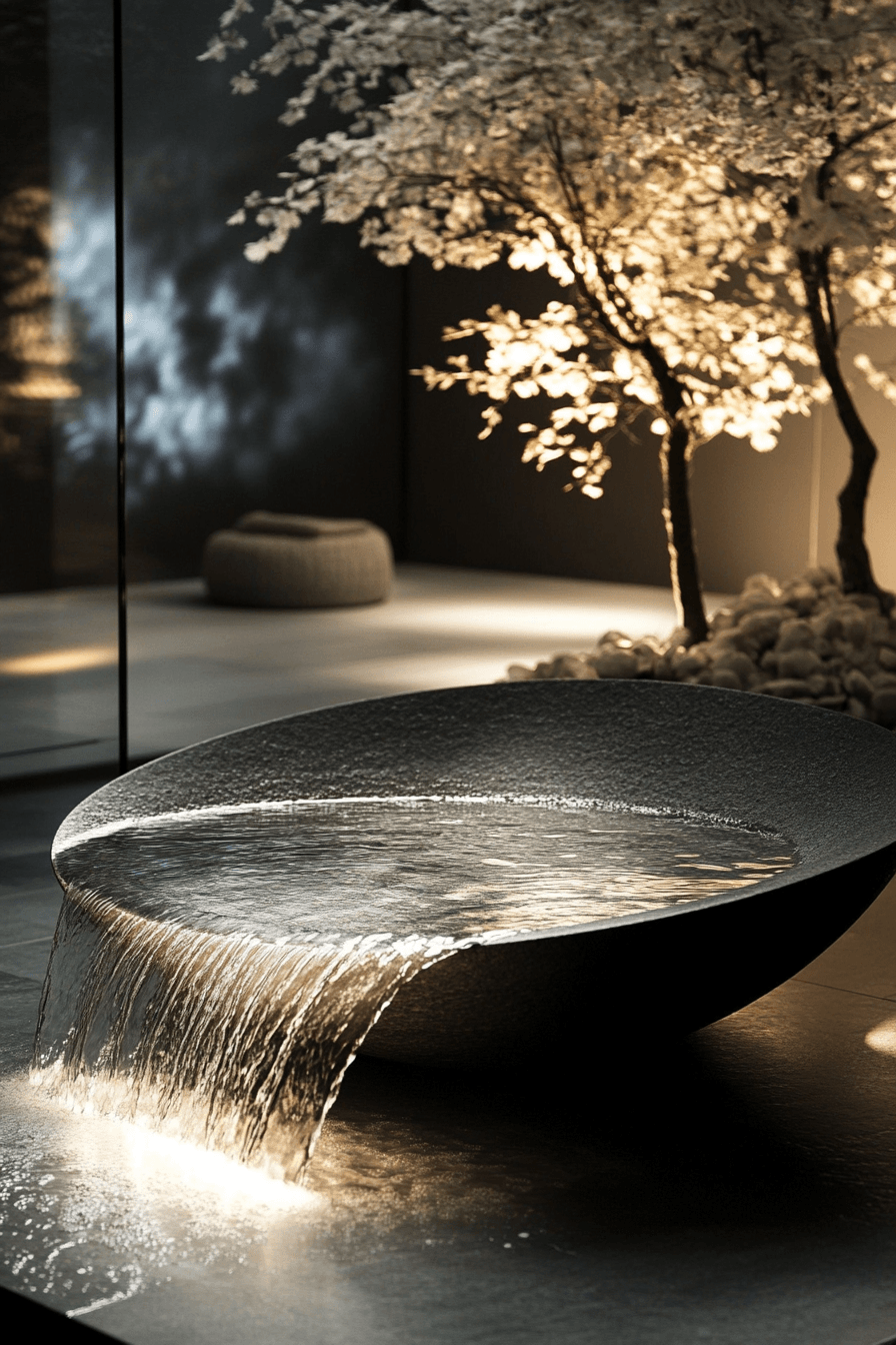 The soothing motion of water adds a dynamic yet calming touch to refreshing zen bathroom decor ideas. A gentle stream from a modern faucet or feature creates a relaxing sensory experience. The sound and movement of water enhance the peaceful atmosphere. Paired with minimal design, the space feels balanced and serene. These zen bathroom decor ideas bring tranquility into everyday routines. Take a closer look at more water-inspired concepts.