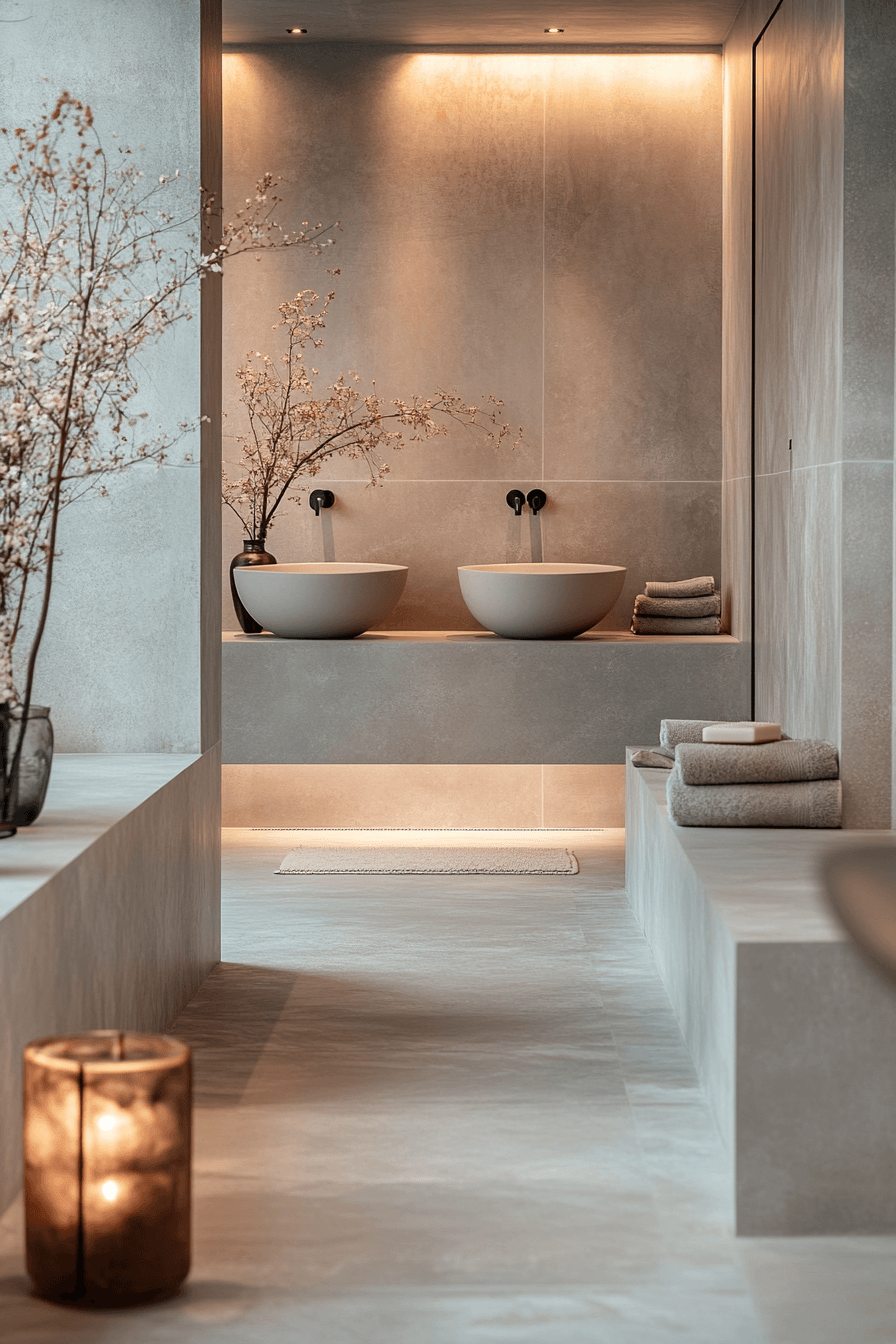Symmetry introduces harmony and structure into balanced zen bathroom decor ideas. Even spacing of fixtures creates a sense of order and calm. Clean lines and thoughtful placement enhance the peaceful atmosphere. This balance makes the space feel more inviting and relaxing. These zen bathroom decor ideas use symmetry as a design foundation. Explore more balanced design inspirations today.