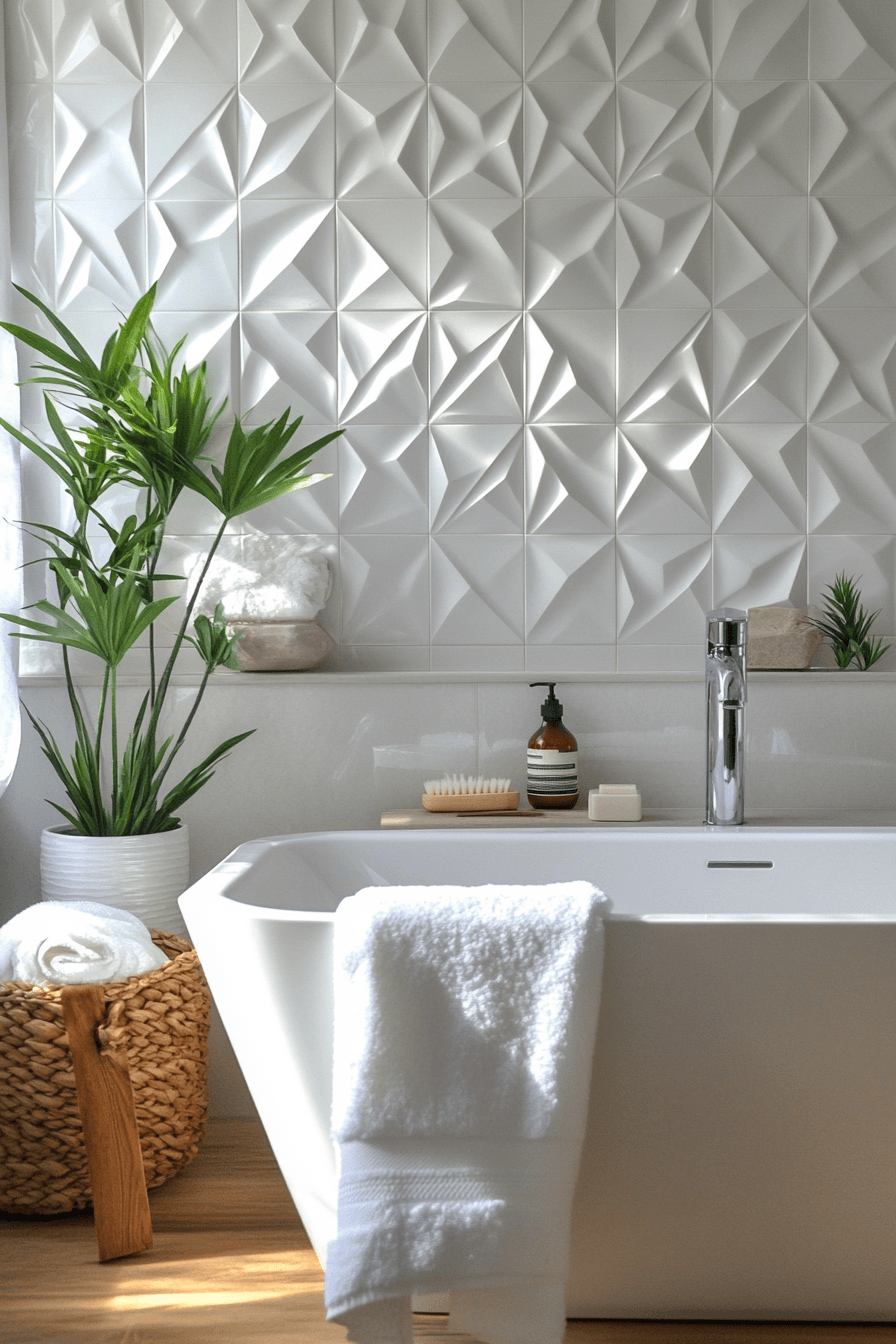 Geometric patterns can subtly enhance zen bathroom decor ideas without disrupting their calm energy. Simple shapes add structure and visual rhythm. Used sparingly, they maintain balance and harmony. These details elevate the design while keeping it peaceful. These zen bathroom decor ideas blend structure with serenity. Discover more pattern-inspired ideas.